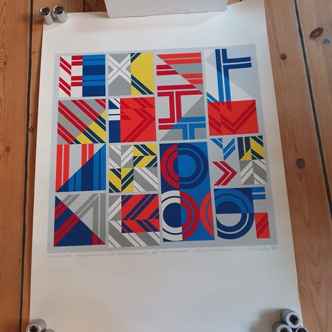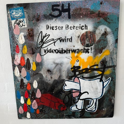 Mixed media på plade, signeret og dateret på bagsiden Allan Otte 01.