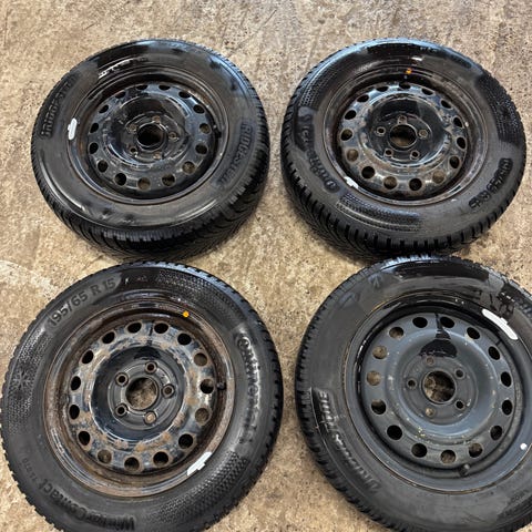 Stålfælge, 15", andet mærke, 185 / 65 / R15, krydsmål 4, ET 47, vinterdæk, Continental, 98% mønster, fælge med dæk, Vinterdæk sælges pga. bilskifte.