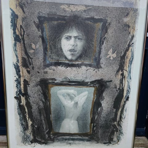 Litografi, Trampedach, motiv: Kvinde, b: 62 h: 74, Vinger af litografisk poster af Kurt Trampedach, signeret, i forbindelse med udstilling i galleri.
