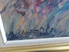 Oliemaleri, Knud Bøstrup, motiv: Landskab, stil: Modernisme, b: 67 h: 57, Oliemaleri af Knud Bøstrup (1927 - 2011 ) maler