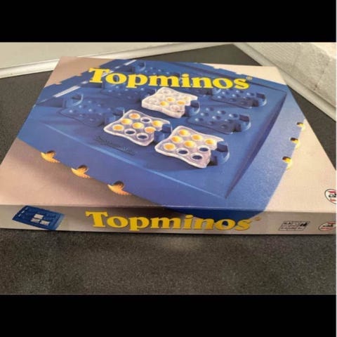 Topminos, familiespil, brætspil, Topminos er et hurtigt familiespil udgivet af dan-spil under licens fra Goliath.