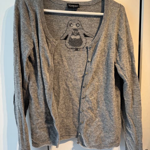 Cardigan, Charter Club Luxury, str. 34, Grå & leopard (sort/hvid), Cashmere, Ubrugt, 100 % cashmere åben, lang cardigan. Lysegrå med leopardprint. XS men en S kan også sagtens passe den. Aldrig brugt. Charter Club Luxury. Nypris 1.500 kr.
