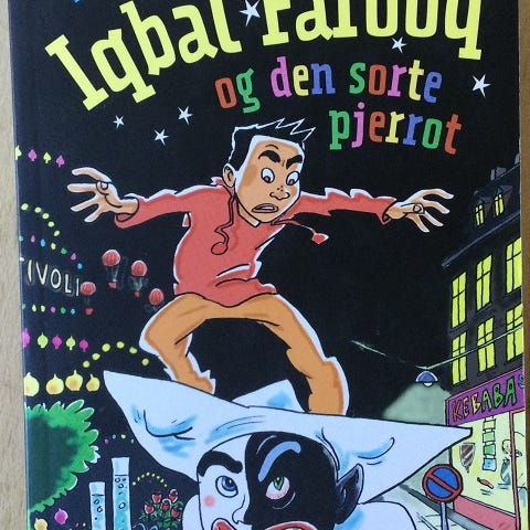 Vi har denne bog "Iqbal Farooq og den sorte pjerrot" af Manu Sareen til salg!