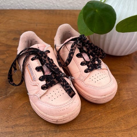 Adidas sneakers str 22 farven er en varm pink.