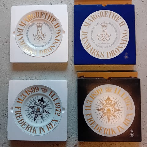 Platter mm., Royal Copenhagen / B&G , 1958, Fine små platter og skåle fra Royal Copenhagen og en enkel Bing & Grøndahl og en enkel fra Søholm. Årgangen variere, man kan jo selv hygge sig med at tjekke efter. Flot stand, dog er der et enkelt slag på den lille kvadratiske skål på “Søndervig ved Ringkøbing”. Ellers ser jeg ingen fejl.