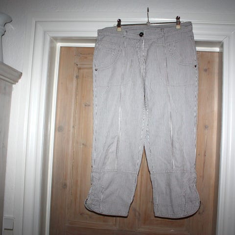 Knickers, Estelle, str. 36 (store i størrelsen) Olivengrøn, 29 % Polyester, 69 % viscose, 2 % elasthan, Næsten som ny, Går ned under knæet. 2 forlommer, 1 sidelomme i hver side med klap. Har snoretræk forneden.