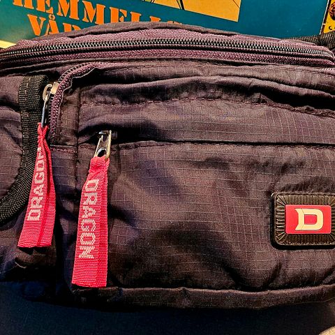 Bæltetaske, Eget, Stor bumbag syet af sejlet fra en kite. Sejlet er brugt tasken ny syet