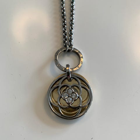 Halskæde, Dyhrberg-Kern, lavet af småbitte brune perler, med forgyldt vedhæng, nypris 379,95. Ikke-rygerhjem