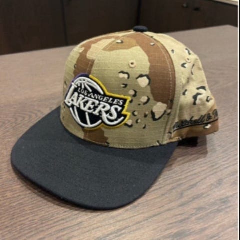 Cap, Mitchell & Ness, Grå, God men brugt, Mitchell & Ness Lakers Los Angeles cap kasket i grå og lilla.