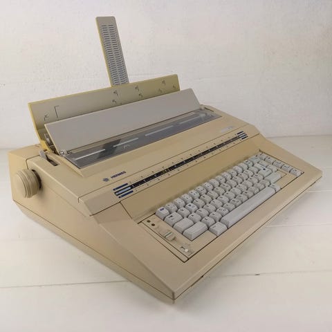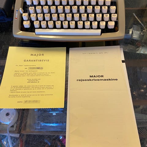 HERMES BABY, Rigtig fin lille rejse skrivemaskine i god stand. Købt af mig fra ny cirka 1975. Dengang var det jo tidens svar på en laptop. Den har været opmagasineret længe og er lidt gulnet udenpå ..det kan nok fjernes med brintoverilte ..sprit tog en del. Derudover skal man nok smøre den lidt og måske et nyt farvebånd er nødvendigt. Men den er ikke på nogen måde slidt.
