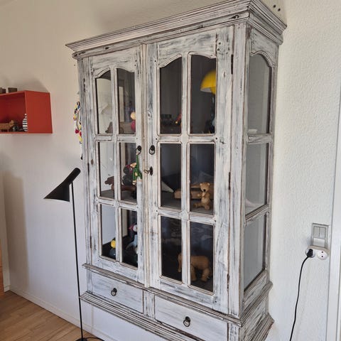 Hængevitrine, Antik, b: 120 d: 29 h: 132, Meget smukt gammelt glasskab vitrine