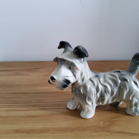 Terrier i stentøj, ?, Stor flot terrier H 23 L ca 27 B ca 10 cm mærket i bunden 618