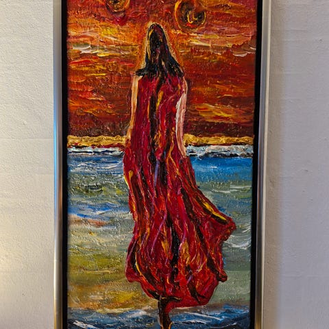 Maleri som jeg selv har lavet og leveres med luksus lærred samt en luksus galleri ramme med sorte sider og en gylden sølv på front.