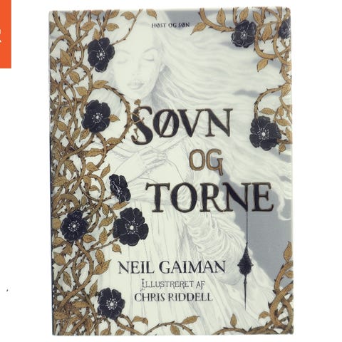 The Sleeper and the Spindle (2014), Neil Gaiman & Chris Riddell, genre: fantasy, Udgivet på engelsk af Bloombury i nok 1. oplag (1 3 5 7 9 10 8 6 4 2) og illustreret i s/h + lidt bronzefarve af Chris Riddell. Indbundet med smudsomslag