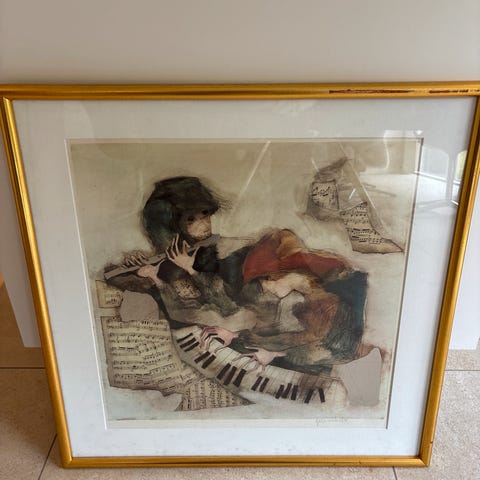 Litografi, Rosina Wachtmeister, motiv: Cello, b: 31 h: 41, Dejligt litografi af Rosina Wachtmeister.Bud modtages