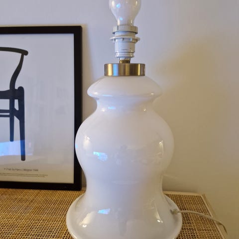 Skrivebordslampe, Holmegaard Lin, Meget stor og flot Lin bordlampe i opal hvidt glas ses sjældent til salg.