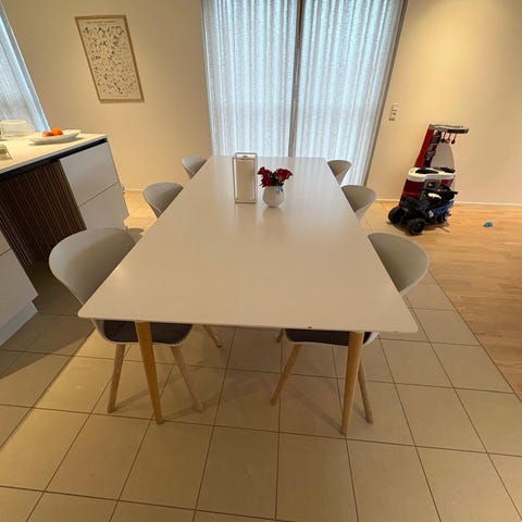 Spisebord m/stole, Hvid laminat , ILVA