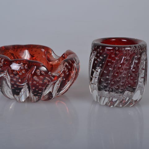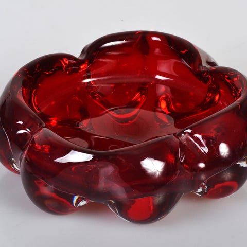 Rød Glas Skål, Gl. Glas, Rød Glas Skål På Fod