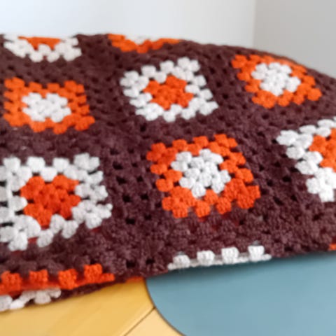 Hæklet plaid, 1 stk. hæklet plaid/lille tæppe i bomuld. Plaiden måler 120 x 80 cm.