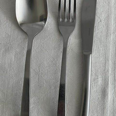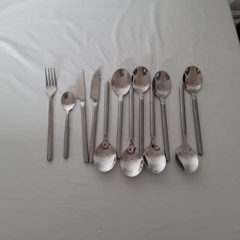 Rustfrit stål, 6 sæt bestik, Raadvad knive, Gafler og skeer næsten nye