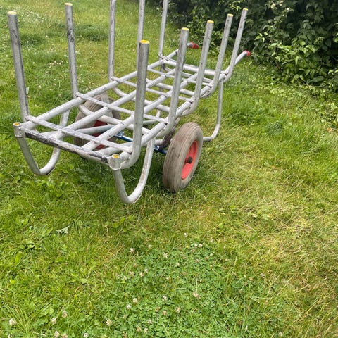 Kørerstangsvogn, Q-Transport Materiel a/s, 2 stk, kørerstangsvogn højde 60cm og 30 cm bredde 70 længde 125 cm sælges fra kr 600 til kr 800, kørerstangen sælges for kr 400 ny priser vogne kr. 2200 og stænger kr. 1150