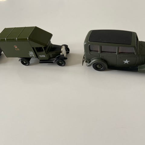 Modelbil, Militærkøretøjer, Jeg har 3 stk militærkøretøjer er meget naturtro, og har aldrig været ude af æsken pris 150 kr. Pr stk.