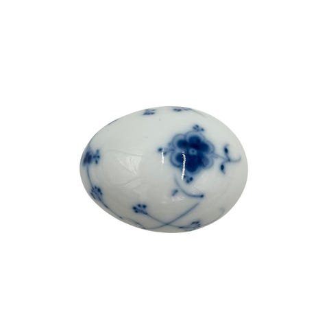 Æg, liggende, blaamalet / musselmalet, Bing & Grøndahl, Bing og Grøndahl har lavet en serie af dekorationsæg. Nogle stående (nr. 692) og nogen liggende (nr. 691). De fleste af æggende jeg er stødt på er blaamalede (musselmalede), men enkelte er fra sommerfugl stellet.