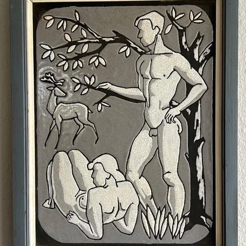 Relief, EBFA Keramik, H. C. Andersens eventyr. Relief i uglaseret ler. Mærket på bagside: Pigen med svovlstikkerne og EBFA Keramik. Højde 20 cm. Bredde 13,5 cm. I fin stand, uden skår og revner.