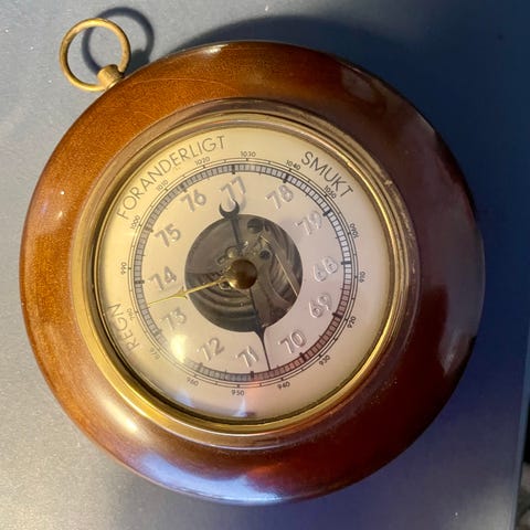 Barometer, Super fint lille retro teak barometer / termometer. Mål 13x15