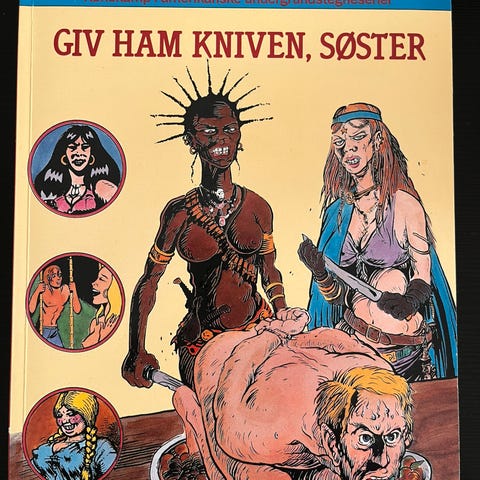 Giv ham kniven, søster, Tegneserie, Titel: Giv ham kniven, søster, Serie og nummer: Portræt af et oprør 2, Udgave og oplag: 1. udgave, 1. oplag, Udgivelsesår: 1987, Format: 19×26,5, 132 sider, s/h, Forlag: Bogfabrikken. meget flot ex. Ulæst som nyt