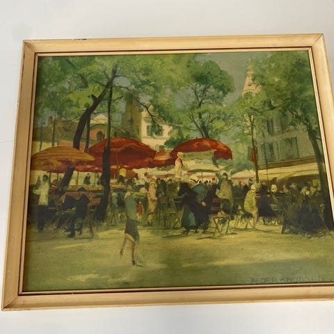 Oliemaleri, Peder knudsen, motiv: Landskab, stil: Naturalistisk, b: 80 h: 60, Lille ridse i lærred, uden ramme