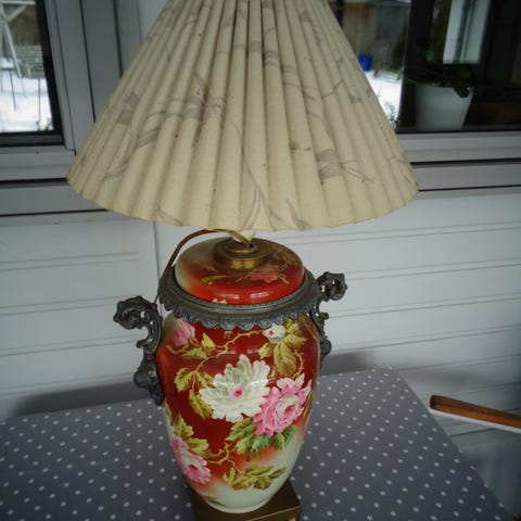 Olielampe, Majolika, Gammel, antik, stor Majolika olielampe.
