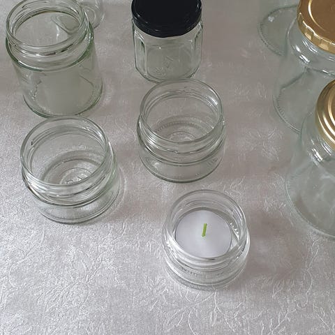Glas, Syltetøjsglas, mere end 25 glas i forskellige størrelser. Fra ca. 1 -10 dl. Med eller uden låg. F.eks. som vandglas, syltetøj, vase, til bryllupspynt eller til at male på eller..... ingen grænser for fantasien. Fra ikke ryger hjem. Rengjorte.
