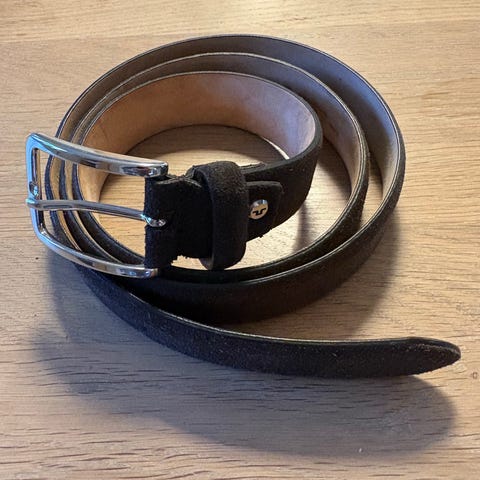 Bælte, J.Lindeberg, 85 cm, Sort, Læder, God men brugt, Læderet er i meget fin stand. Spændet virker fint, men sølvet er slidt. Nypris 600kr.