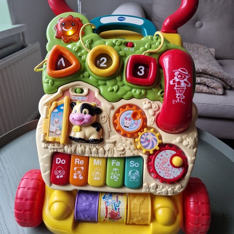 V tech gåvogn, V tech, aktivitetslegetøj, Flot V tech gå vogn med aktivitet ord med forskellige lyde og funktioner.