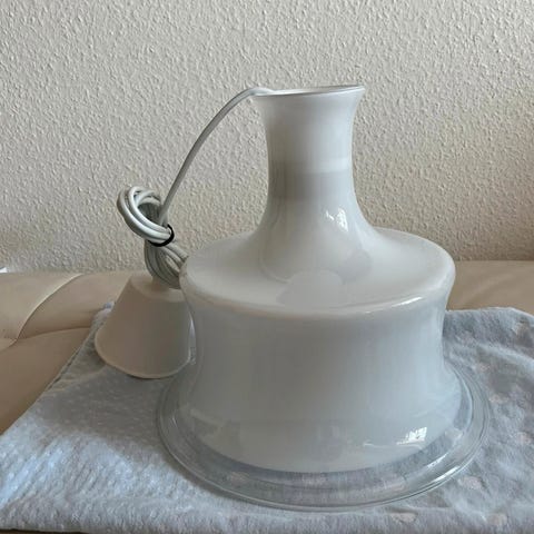 Holmegaard Sonate pendel lampe i hvid opalglas er mundblæst og fremstillet på Fyens Glasværk, produceret for Holmegaard Glasværk.