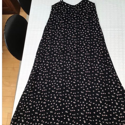 Ubrugt kjole str M. kongeblå m/turkis og gule blomster (Rabat: 3 annoncer for 2)