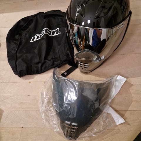 Hjelm, Icon Fliteshield, str. M, Sort, Sælger dette Icon Airflite visir i str. M. Har det tilovers efter salg af MC og hjelm. Ubrugt, og på de sidste billeder kan man se, hvordan det ser ud på hjelmen. Rigtig nemt at skifte. Den er Pinlock-klar.