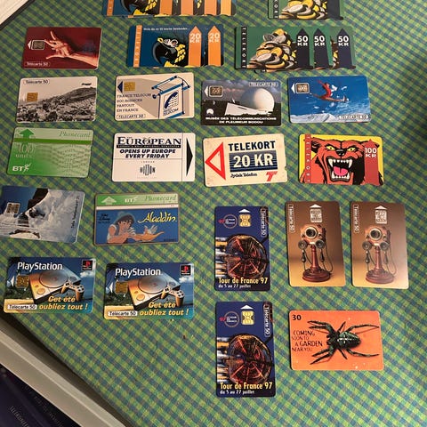 Telefonkort, Samling af gamle telefon kort (både brugte og ubrugte). Forskellige lande, bla. Danmark, Canada, Italien, England, Tyskland, Holland, Sydafrika mm. Sælges kun samlet. Ialt 98 stk.