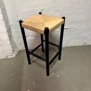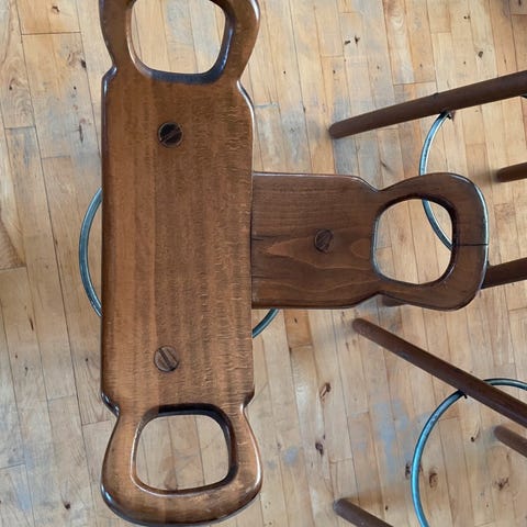 "Marbella Barhocker" barstol af Sergio Rodrigues. Charmerende og flot stol fra 1960'erne. Udført i egetræ og metal. Fremstår med almindelige brugsspor og enkelte tørrevner.