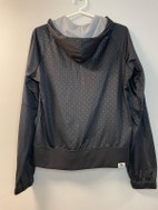 Trøjen sort med N’ overalt (se billede) har snore i hætten, som kan strammes ind, samt skrålommer med lynlås.