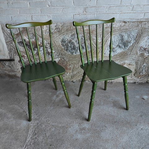 Spisebordsstol, Billund stolen, 2 Røde retro pindestole “Billund stolen” Pindstolene er fra omkring 1970’erne