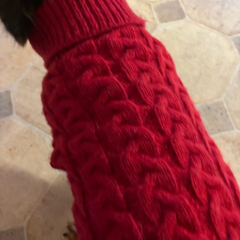 Størrelse: 45 cm. Passer til mellemstor hund - også en han;-)