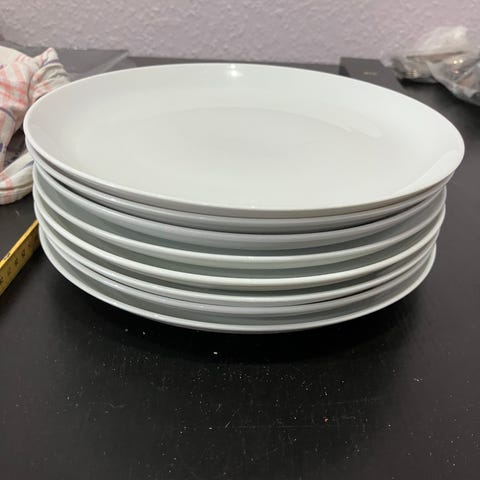 Porcelæn, Tallerken sæt i hvidt, bestående af 8 flade tallerkner som måler cirka 23,5 cm + 12 dybe som måler cirka 22 cm og 9 kage tallerkner som måler cirka 17 cm samt kun 4 re undertallerkner til i alt 10 kopper i en pæn stand alletiders for den som lige er flyttet hjemmefra og hvidt går aldrig af mode samlet pris