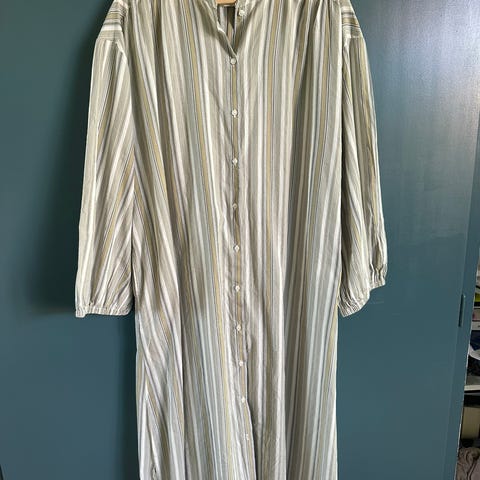 Blusekjole, Moshi moshi mind, str. S, Blå, Modal, Ubrugt, Oversize, elegant kjole i blød modal. Mønster i blålige toner. Lommer i siderne. Kort slids med runding i siderne