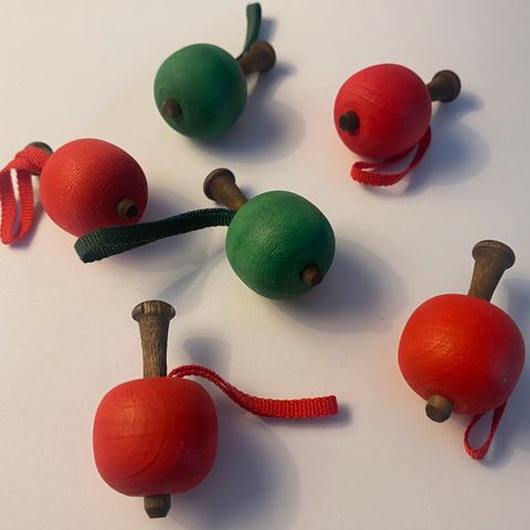 2 røde træ-æbler fra Dansk Sløjd, Skønne gamle træ-æbler fra Dansk Sløjd. Prisen er for begge.