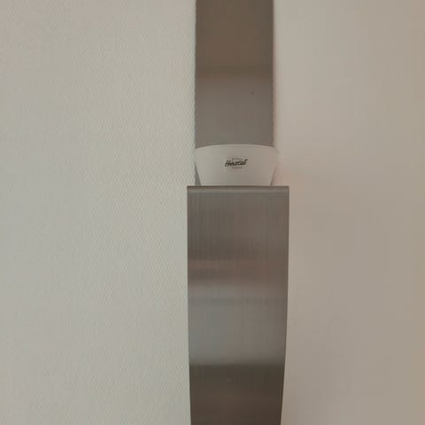 Væglampe, Herstal, Sæt med 2 vægspotlamper fra Herstal i børstet stål og med skærme i klart og frosted glas.