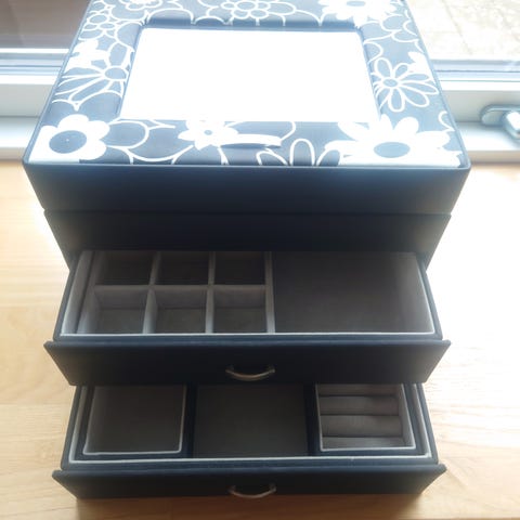 Smykkeskrin, andet materiale, Rav lignende måske indstøbt rav måler 5,5x9,5x6 cm