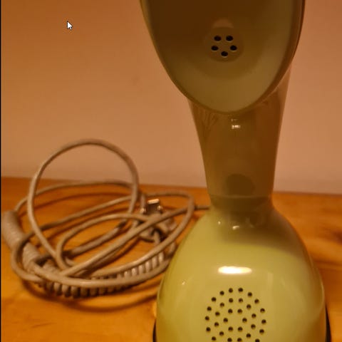 Bordtelefon, Cobra/Ericofon, Bordmodel, God, Gammel rød telefon med drejeskive i bunden.