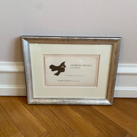 Lidt om G.B.: Fra 1908 viste hans billeder en drejning mod geometri og simultanperspektiv. Han gik således imod renæssancens centralperspektivistiske billedkomposition og undersøgte nøje lysets betydning for perspektivet samt hvilke maleriske hjælpemidler, kunstneren havde til sin rådighed. Han syntes efterhånden at sætte spørgsmålstegn ved de fleste tidligere 'sandheder': han kunne fremstille en arkitektonisk struktur som en kubus, der blev skyggelagt, sådan at den virkede flad og tredimensionel samtidig. Samarbejdet med Pablo Picasso begyndte i 1909. Han havde søgt svar på de samme problemer og kaldte sin stil for analytisk kubisme. Den var præget af neutrale farver og komplekse former. I 1911 introducerede Braque fragmenter af ord og tal i sine kompositioner, og i 1912 anvendte han avis- og tapetstykker på lærredet og opfandt derved teknikken papier collé, der var forløberen for collagen.